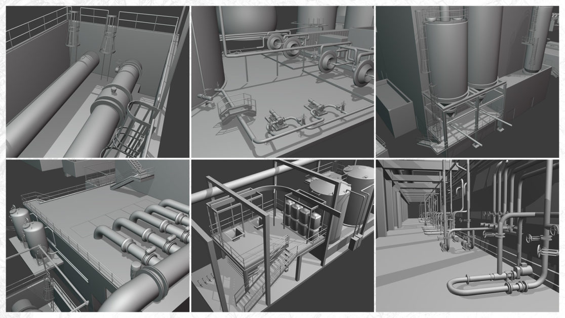 Quelques exemples de modélisation et d’intégration de bâtiments industriels pour certains à destination d’applications temps réel comme PS-Monitoring une application permettant le diagnostique et le contrôle de bâtiment à distance.
